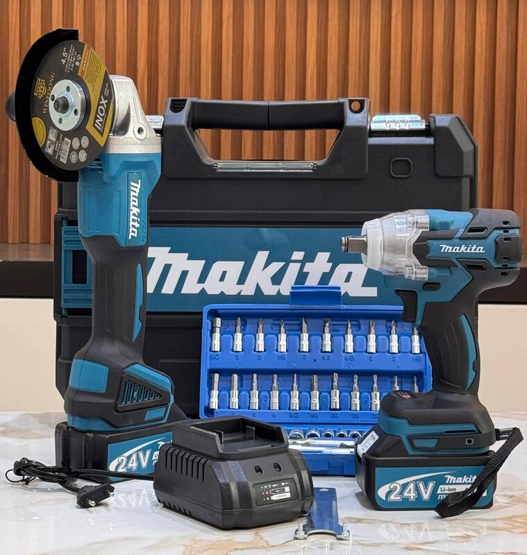 طقم مكيتا 7 قطع مع 4 بطاريات (جكسون نصلة) +فيبرة
