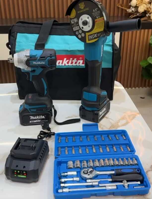 طقم مكيتا 7 قطع مع 4 بطاريات (جكسون صينية) +ف...